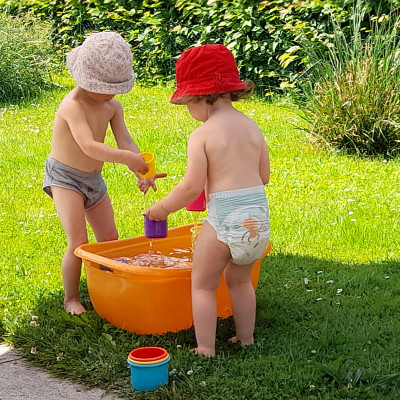 Ganz wichtig dafür ist ein strukturierter Tagesablauf. Dazu gehören natürlich auch die gemeinsamen Mahlzeiten von Frühstück und Mittagessen. Wir frühstücken in der Regel um 9 Uhr morgens und essen um ca. 12 Uhr Mittag. Die Mahlzeiten können wahlweise von den Eltern mitgebracht werden oder ich bereite sie zu. Nach dem gemeinsamen Frühstück wird gespielt, gesungen oder auch mal gebastelt, ehe es hinaus in Feld und Wald geht. Nach dem Mittagessen lege ich die Kinder um ca. 13 Uhr in Reisebetten zum Mittagsschlaf hin, der in der Regel 1-1,5 Stunden dauert. Und dann dauert es gar nicht mehr lange, bis Sie als Eltern ihr Kind frisch ausgeruht und in guter Laune wieder abholen können.